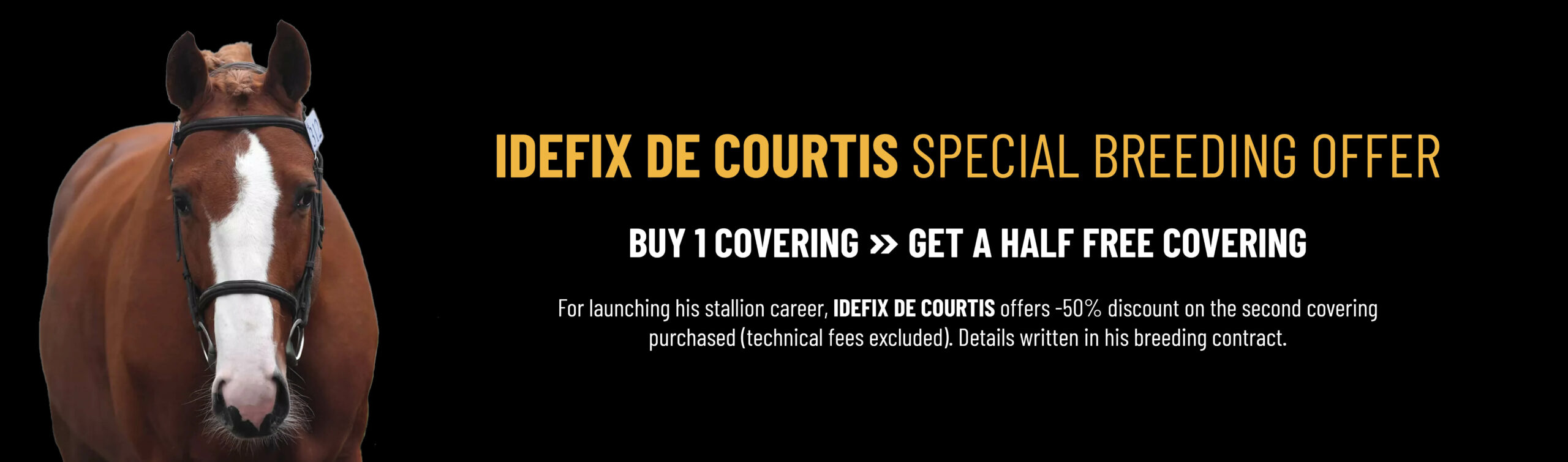 ❝ Idefix de Courtis is a charismatic son of the great showjumping winner and Elite Sire Casall, crossed with one the best SF dam line from which also come from the Olympic Champion 2016 with the French team, Rahotep de Toscane and the individual vice-Champion of the World 2002 Dollar du Murier.❞