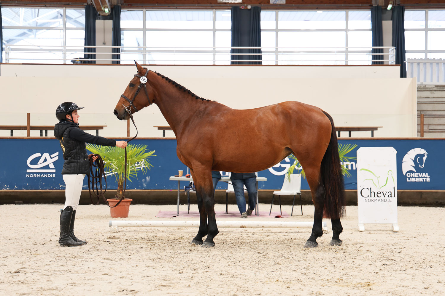 Vainqueur de la qualificative étalon de 3 ans de Saint-Lô avec notamment l’excellente moyenne de 18.25 au saut monté et 19 aux moyens !